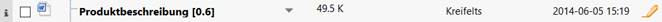 Der in Abbildung 1 gezeigte Ordner enthält ein Exemplar von vielen der genannten Typen. Jedes Objekt wird durch einen Eintrag repräsentiert. Dieser beginnt mit einem Auswahlkästchen (‚check box‘), um das Objekt für weitere Aktionen auszuwählen, und enthält des weiteren den Objektnamen, eine Schaltfläche, die ein Aktions-Popup-Menü öffnet, sowie einige Symbole und zusätzliche Daten, wie in der folgenden Abbildung dargestellt.